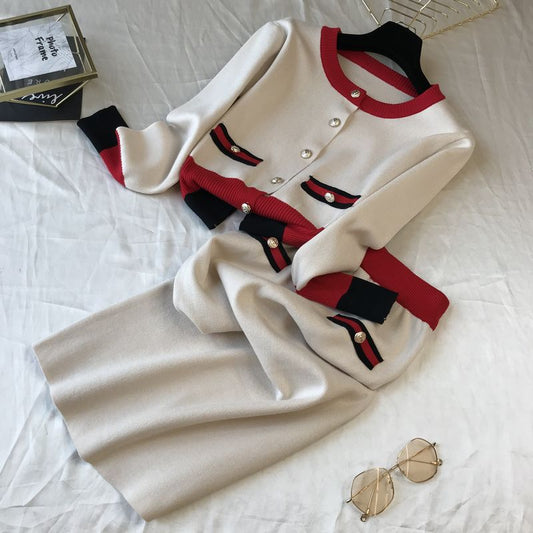 Vintage Two-Piece Pearl Button And Knit Sweater Set