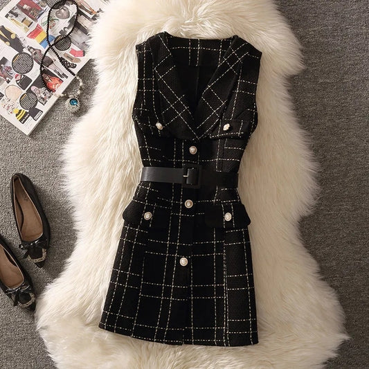 Two-Pieces Vintage Strap Dress And Suit Jacket Set